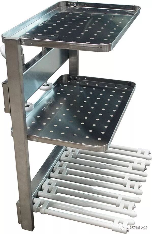 节约成本:本機秉承意大利現代製鞋之先進規劃理念,單體工位採用適合人體工學的高度,托盤為三層設計,两层不锈钢盘子,一层鞋架。在一条线上适合各种鞋型的各个流程,更多的節約成本,加大了空間的利用。